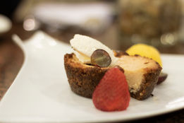Naturalmente, tengo decencia y recato y no le metí la cuchara al plato de Rubén, pero en sus palabras: “de los mejores salmones que he probado”, y, créanme, I eat a lot of salmon. Por supuesto, como cualquier mujer empoderada del siglo XXI, tengo un estómago especial para los postres, porque verlo a él no era postre suficiente, así que el chef nos envió su signature dessert: un pie delicioso y perfecto, la mezcla de textura de lo crunchy del crust con lo soft del pie is pure heaven.