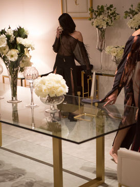 El performance permitió que los espectadores interactuaran con los modelos creando un recorrido en dos salas donde todos los invitados podían ingresar y apreciar muy de cerca cada uno de los detalles de las diferentes piezas, “Una línea de tiempo interactiva” mencionó Alessandra Bregni, Directora de Boga Models. Los espacios que Eduardo utilizó iban de la mano con su estilo de diseño tan característico. Creó, en dos salas distintas, el espacio más elegante de todo el recinto. Chandeliers llenos de cristales, muebles con un diseño sobrio y elegante complementados con detalles metálicos y brillantes, el uso de texturas como cueros negros y blancos crearon una atmósfera digna de Marie Antoinette herself, un túnel que nos transportó a las salas de Le petit Trianon o cualquier villa renacentista de la región del Venetto, llenas de detalles de diseño y piezas exquisitas de vestimenta, caminar entre los modelos; el espacio de Eduardo fue una pequeña abstracción de lo que pudo ser caminar en la corte francesa en Versailles.